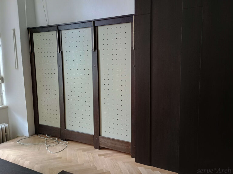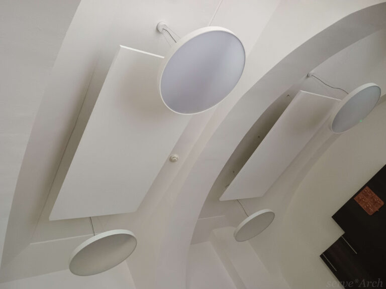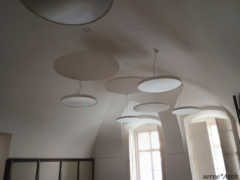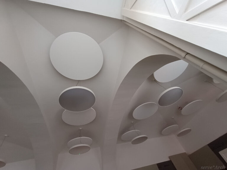 ... pomalu plynoucí statický (stabilní) svět, kde každé slovo se váží na vahách. Tady bydlí SLOVO. To kvůli němu se stavělo obložení po bocích do výše a ze stropů zavěšovala Jitka kola, aby jej zdi a stropy nepohlcovaly, a ono mohlo svobodně se odrazit do uší a v záznamu. Litinové radiátory s rozvody zůstaly, lifting neproběhl až tak hluboce.