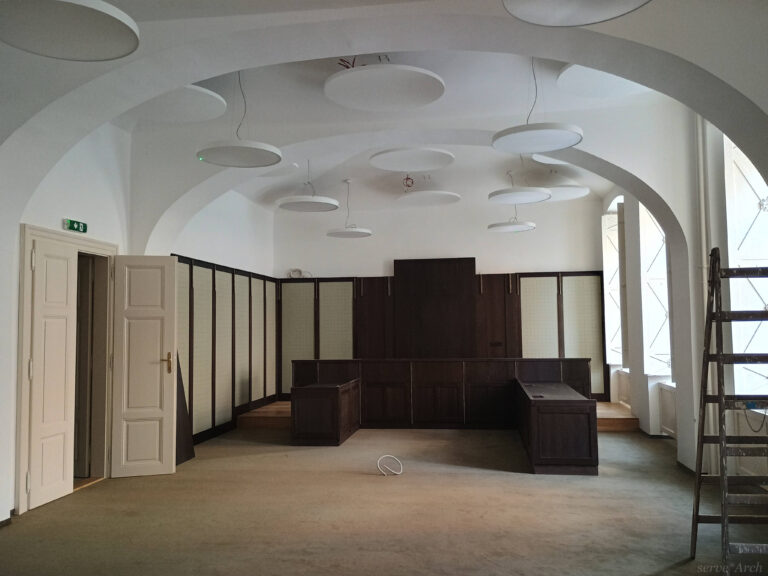 V loni, v měsíci padajícího listí, začala obnova sedmi soudních síní v domě, co už hodně pamatuje. Dům je to starý a složitý, vznikal postupně. Bouralo se a stavělo ... tamhle něco se nechalo a opravilo, tuhle něco přistavělo. Nesl mnoho jmen. Býval domovem šlechtických rodů, vojenské posádky, mincovny a nejnověji soudu, i když je to drahně už stopadesát let. :)