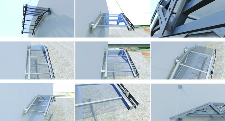 stříška na vchodem III. / svařovaný pískovaný/kartáčovaný hliník / tvrzené sklo ... motion pictures :)
