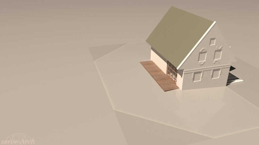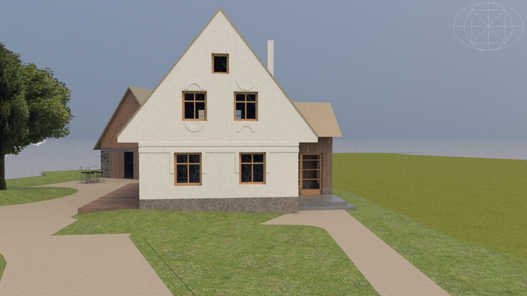 Chtěli jsme s Petrem chaloupku vesnickou, malou, lidovou, zděnou. S fasádou zdobenou, co má v omítkách ornamenty vydrápané, vtisknuté nebo přilípnuté. Přemýšlela jsem dlouho - nad rozměry a poměry, sklony a výškami ... V knihách jsem hledala, kolem domy studovala ... dneska bych se tak úporně nedržela zadání. :-)